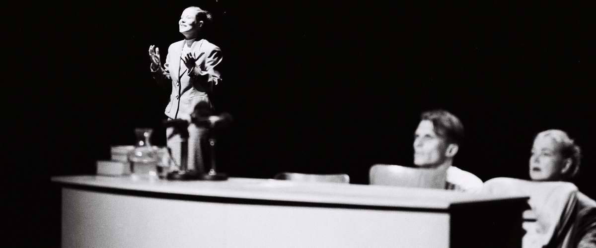 À partir de morceaux choisis, je me suis mis alors à imaginer une forme qui permettrait un jeu théâtral cohérent mais à multiples facettes basé sur la dialectique brechtienne. La fausse conférence comme cadre de jeu pour les comédiens s’est ainsi imposée tout naturellement. Il m’a semblé que là aussi il s’agissait de rompre une convention, celle de la lecture publique, trop souvent banale, pour en faire du théâtre vivant. Nous y avons pris beaucoup de plaisir.